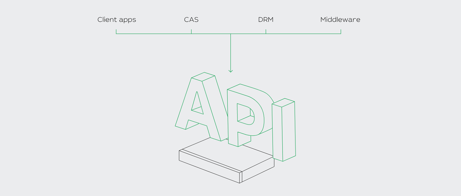 Using the API, you can integrate the model with various middleware and content protection systems. Integration with Widevine, Securemedia, and Verimatrix systems is available upon request.