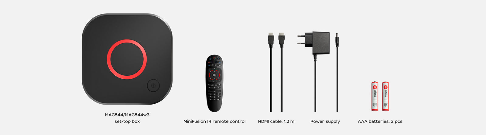 With MAG544/544w3 set-top boxes, users can enjoy Linear TV, video-on-demand, and IPTV/OTT content1. The devices play content from the Internet, local network, and external media. Operators are welcome to customize these set-top boxes to suit their projects, providing users with a unique interface, user experience, and reliable technical support.